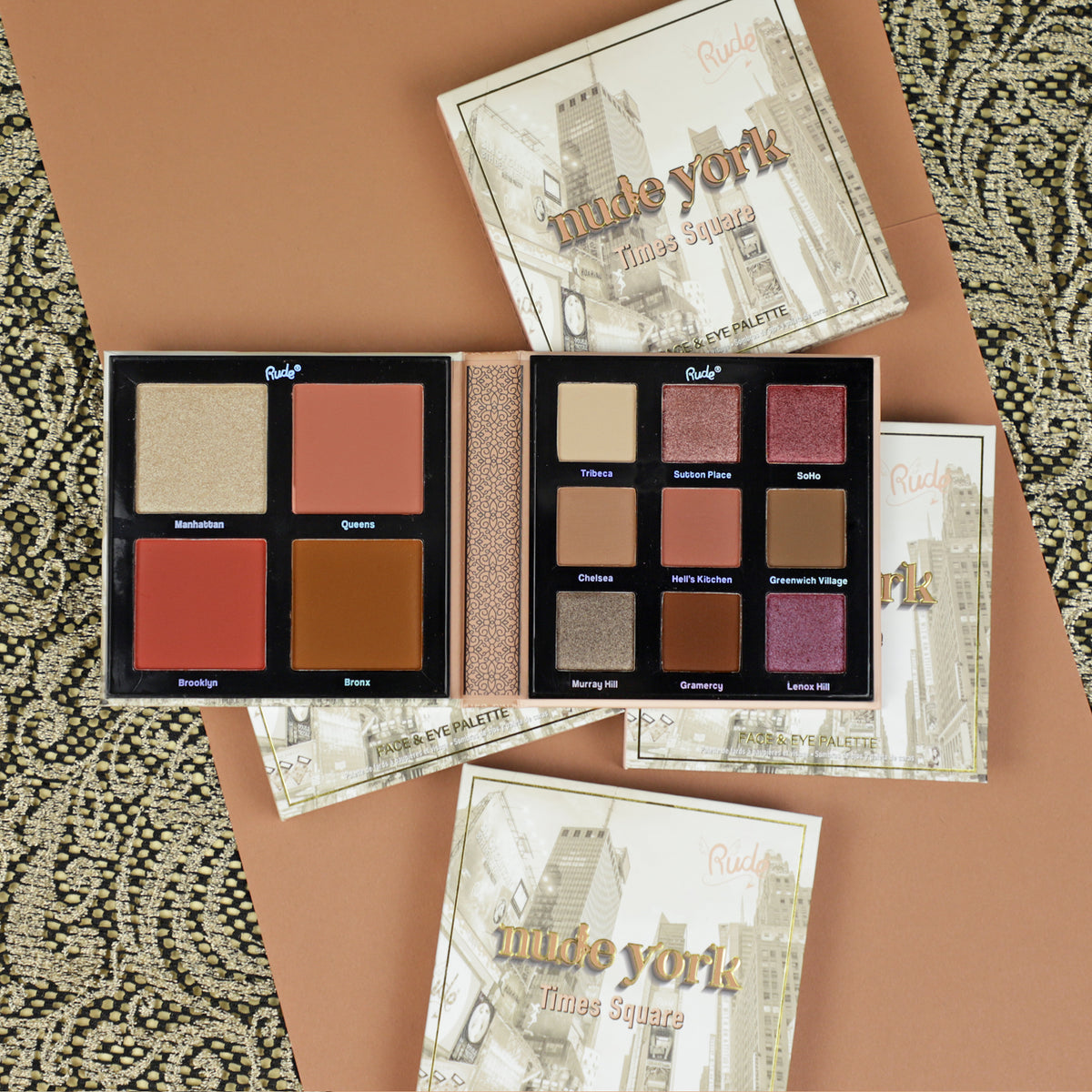 Pack light and explore the city of Nude York with this face and eye palette. With four face sculpting shades and nine natural matte and shimmer shadow shades, this palette is curated to allow you to strip down and embrace your natural, vibrant self.