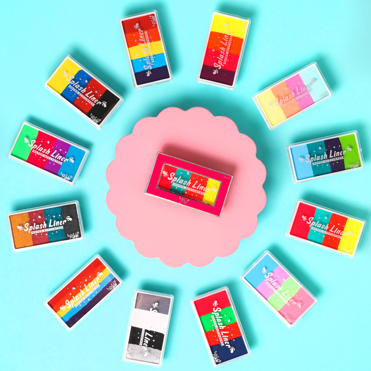 Introducing our latest water activated split cake liners! A little splash of water will turn these colors into liquid liners! The splash liner is available in twelve different variations, each containing multiple colors. These liners are perfect for face and body painting. Apply using one of our specially designed Splash Liner Brushes.